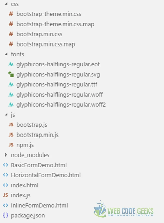 In this example, we will create Html Forms with bootstrap framework. The bootstrap framework has a lot of classes to enable us to create forms that are responsive and provide a nice UI. We will specifically look at creating basic, horizontal and inline forms with Bootstrap and explore the various classes for styling individual form controls like inputs, buttons, anchor tags, text areas among others. So let us get started with building an example application to understand and learn the features of bootstrap for building forms.