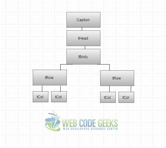 If you know the general structure of the tables, like the one we explained in the first section, then you’ll find this part very easy. There’s a common rule that is used for this usually, which goes like this: you start to create each element starting from the bigger container, and append them starting with the smaller one.